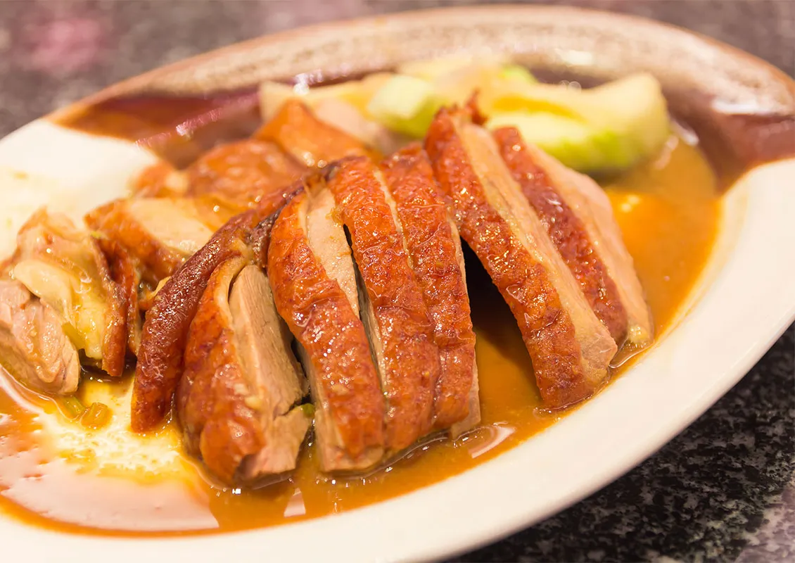 - アヒルをオーブンから取り出し、スライスする前に1分間休ませます。アヒルを有機野菜の上に置き、マリネしたオレンジシュプリームをアヒルの上に置き、千切りにした砂糖漬けの生姜を5〜6片振りかけます。