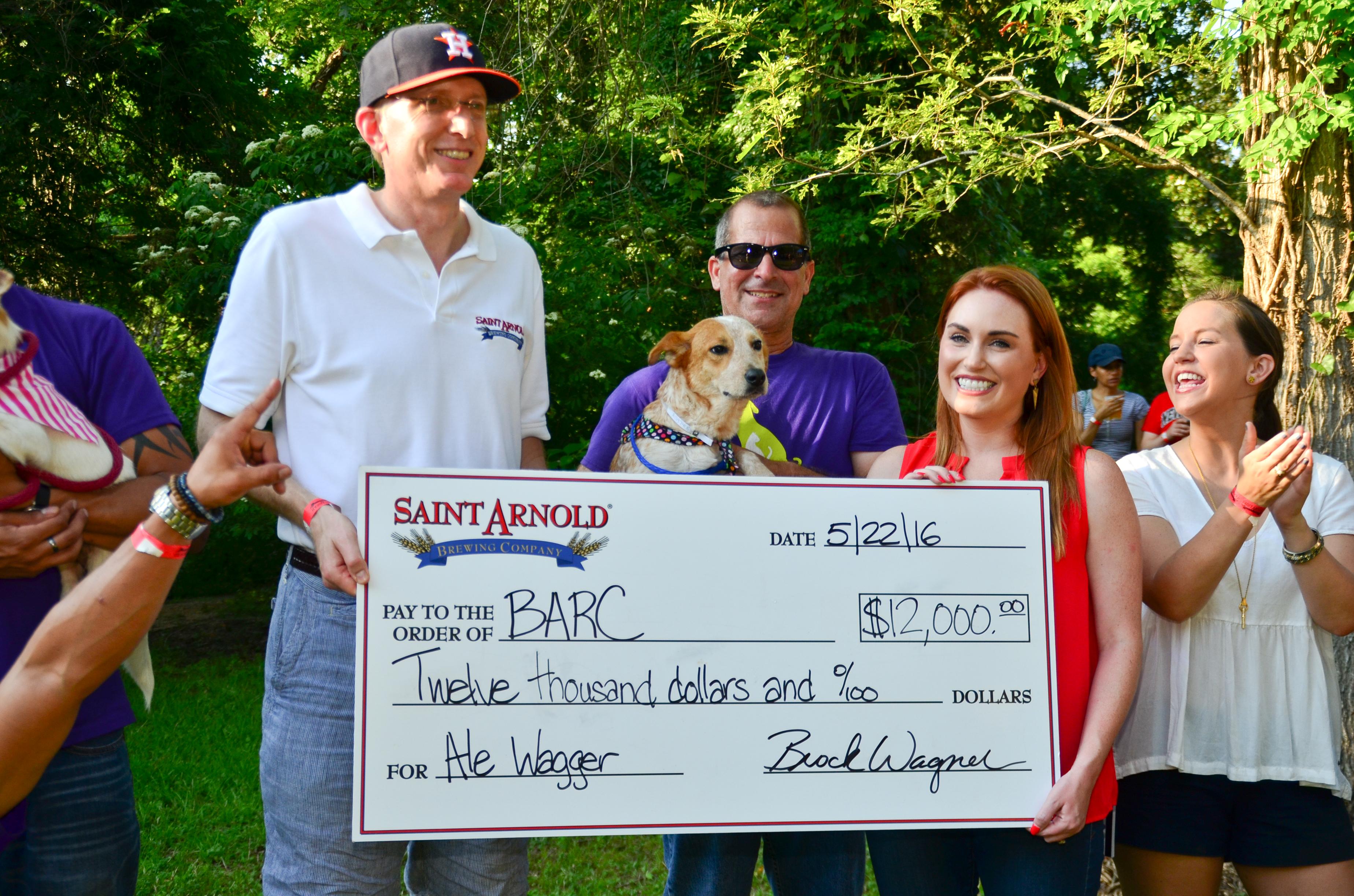 ヒューストン 2016 年 5 月 23 日 – テキサス州最古のクラフトビール醸造所であるセント・アーノルド・ブルーイング・カンパニーは、エール・ワガー・イニシアチブへの支援に対するクラフトビールコミュニティに感謝の意を表しています。先週末、セント アーノルドの創設者兼醸造家のブロック ワグナー氏がアドリアンナ フィッツパトリック マーケティングに 12000 ドルの小切手を贈呈しました。